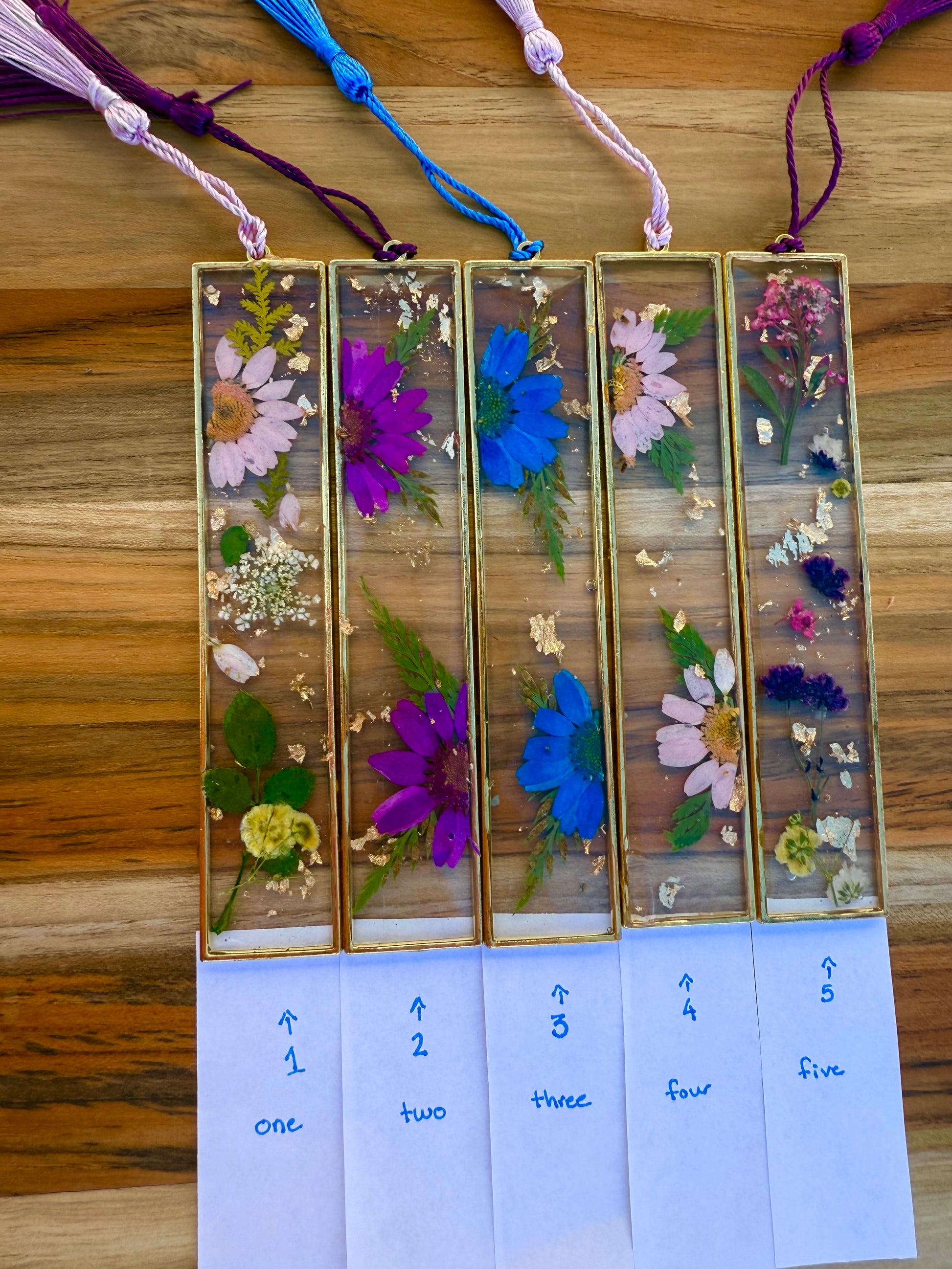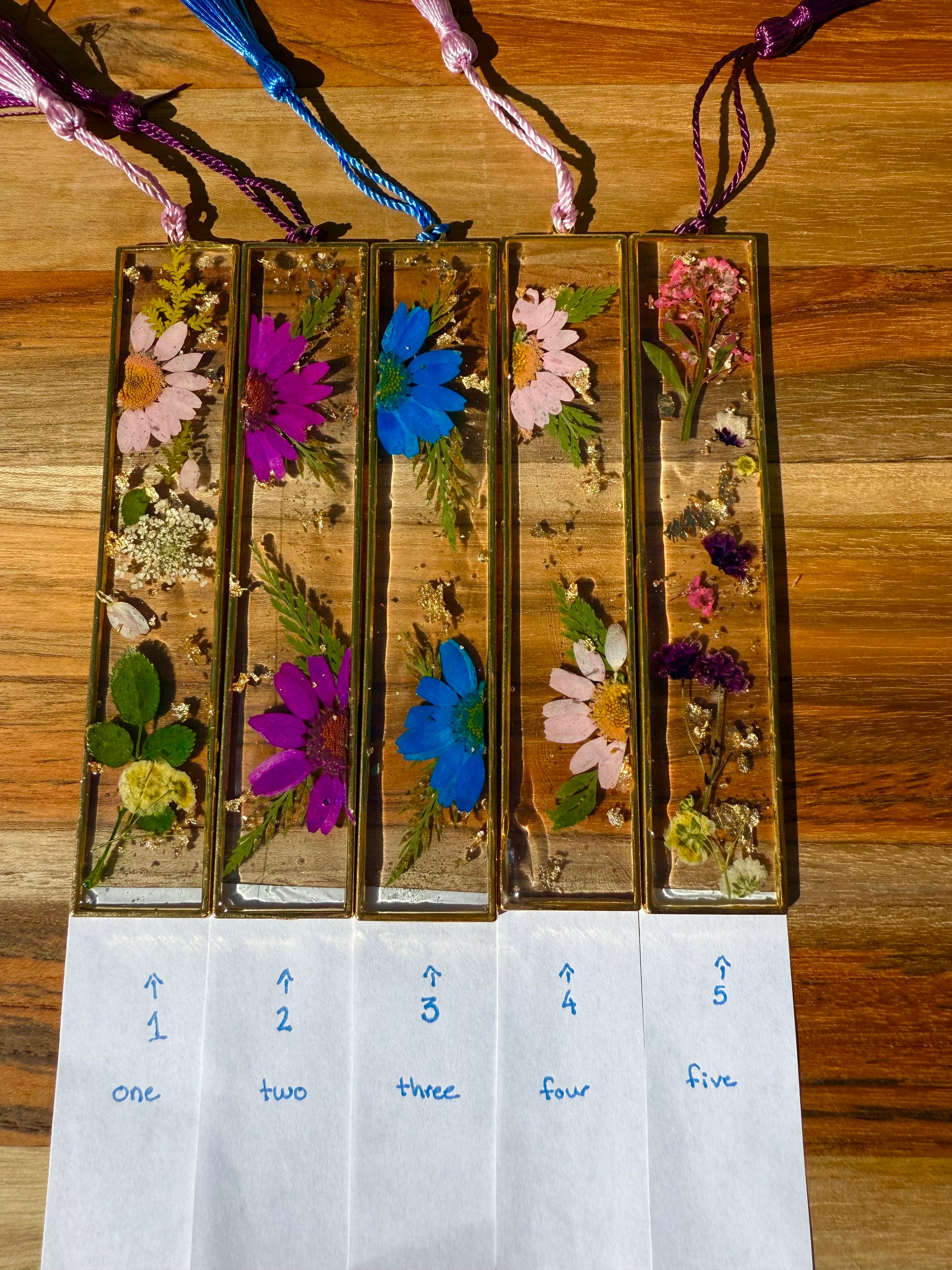 Handmade resin bookmark with dried flowers